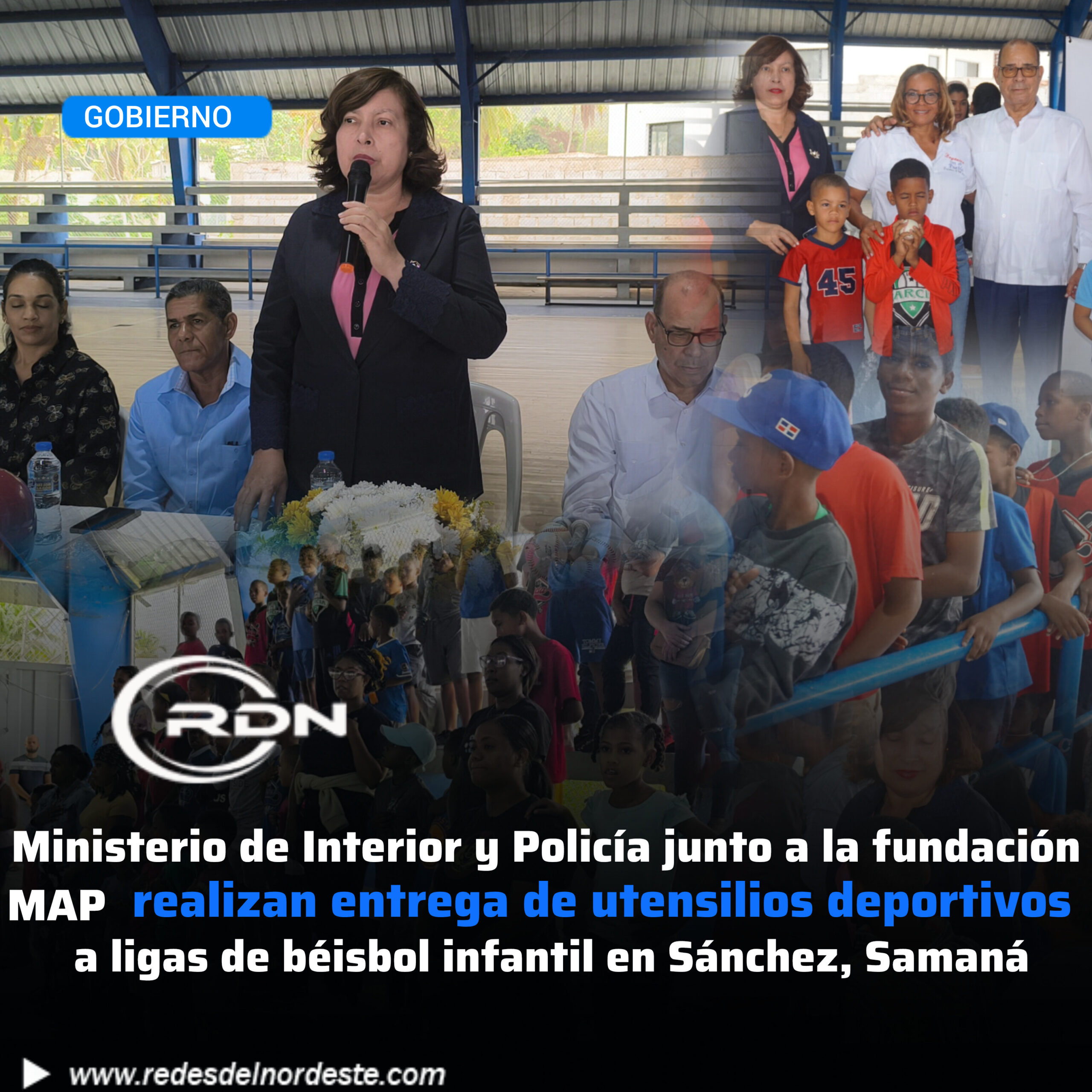 Ministerio de Interior y Policía junto a la fundación MAP realizan entrega de utensilios deportivos a ligas de béisbol infantil en Sánchez, Samaná