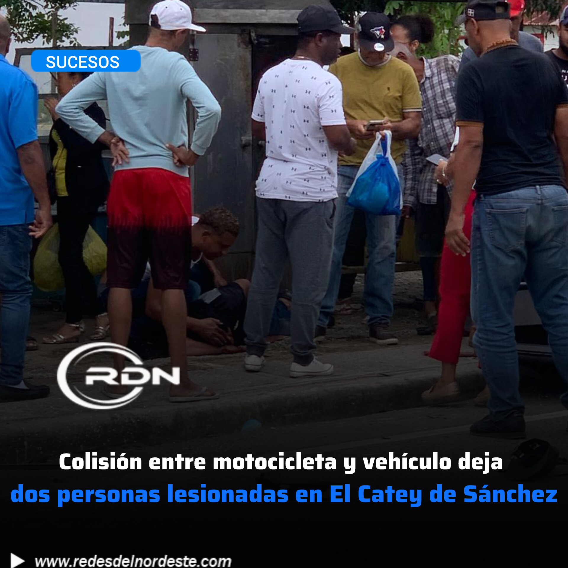 Colisión entre motocicleta y vehículo deja dos personas lesionadas en El Catey de Sánchez