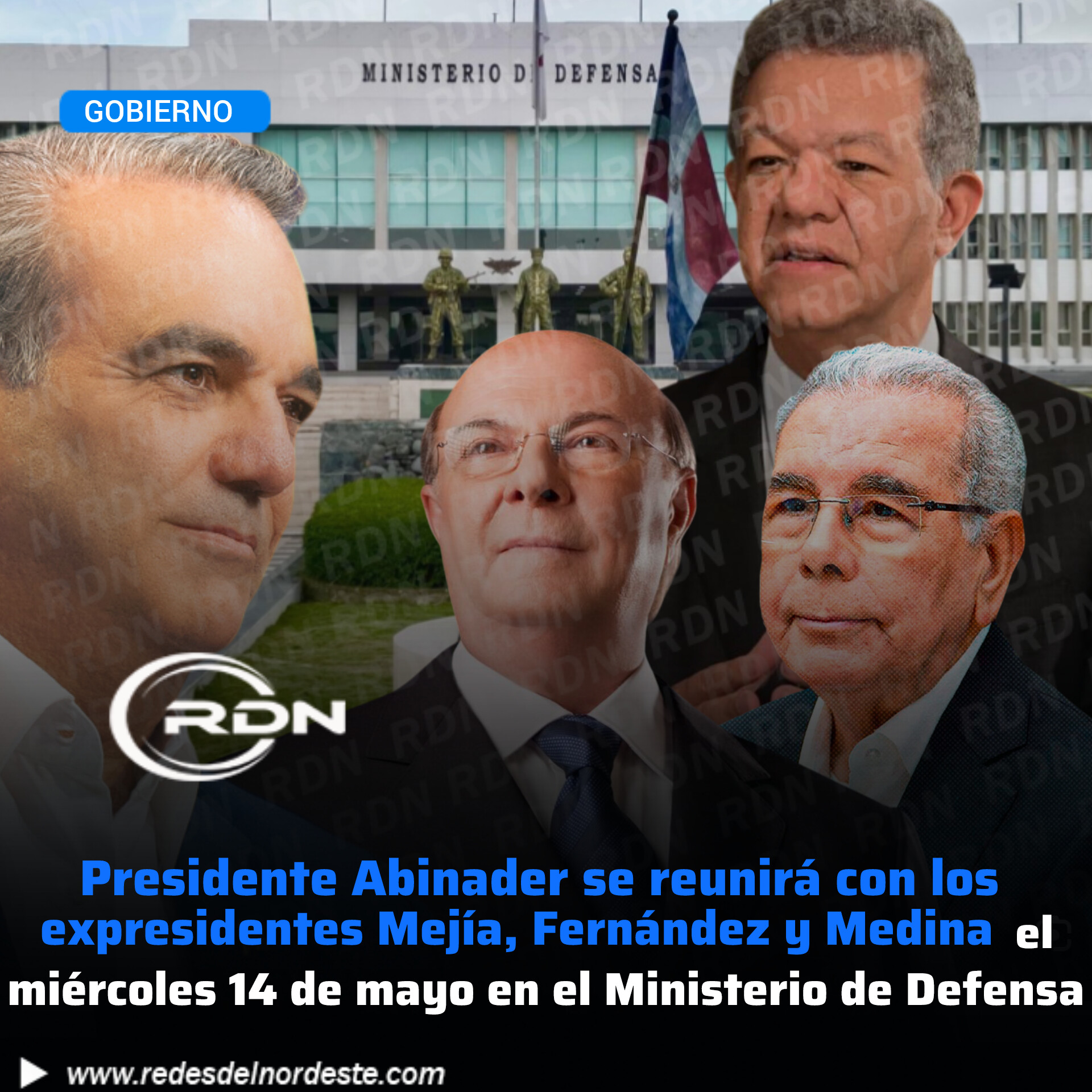 Presidente Abinader se reunirá con los expresidentes Mejía, Fernández y Medina el miércoles 14 de mayo en el Ministerio de Defensa
