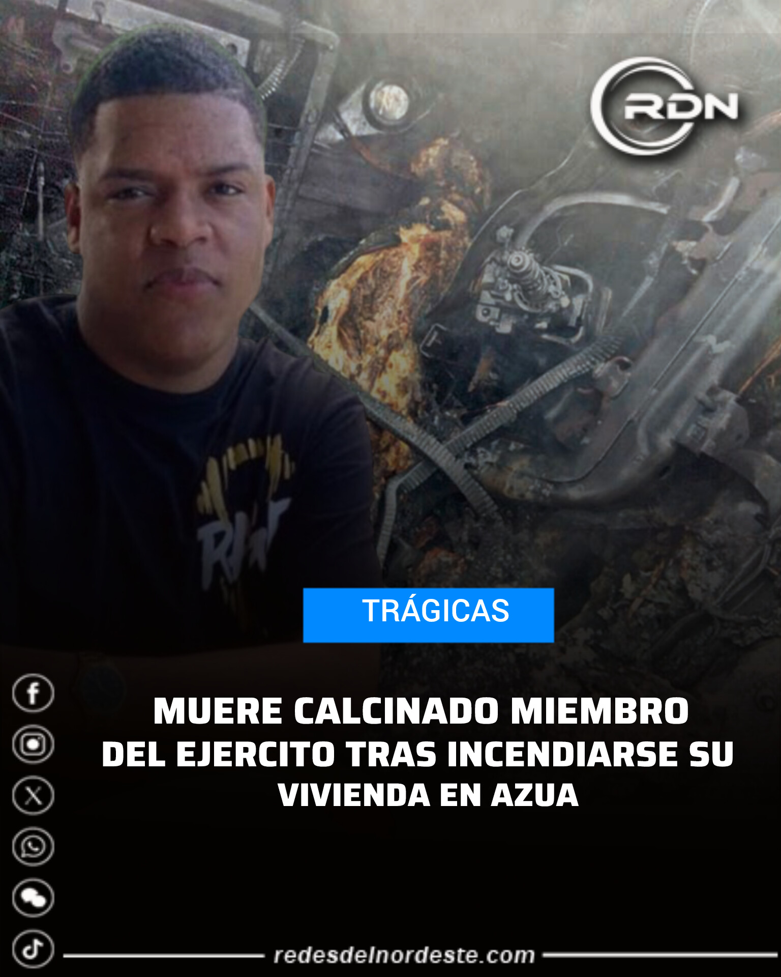 MUERE CALCINADO MIEMBRO DEL EJERCITO TRAS INCENDIARSE SU VIVIENDA EN AZUA
