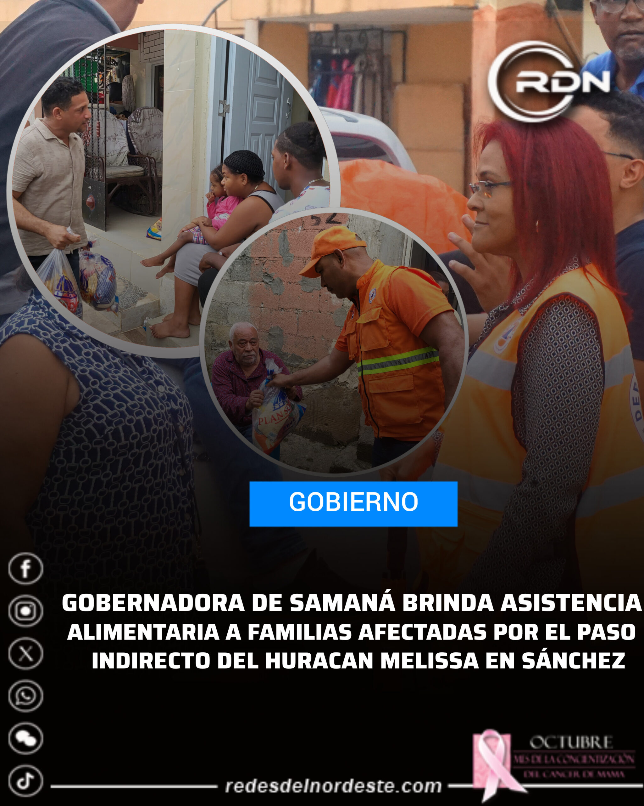 GOBERNADORA DE SAMANÁ BRINDA ASISTENCIA ALIMENTARIA A FAMILIAS AFECTADAS POR EL PASO INDIRECTO DEL HURACAN MELISSA EN SÁNCHEZ
