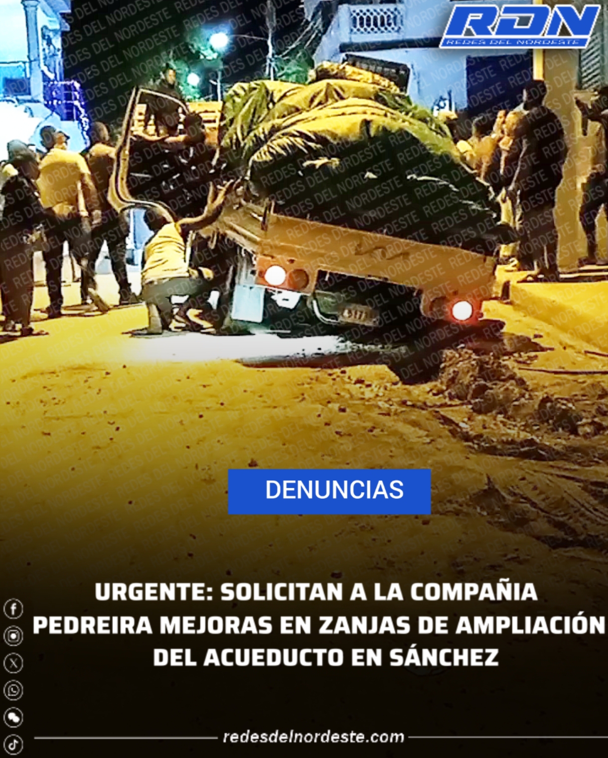 URGENTE: SOLICITAN A LA COMPAÑIA PEDREIRA MEJORAS EN ZANJAS DE AMPLIACIÓN DEL ACUEDUCTO EN SÁNCHEZ