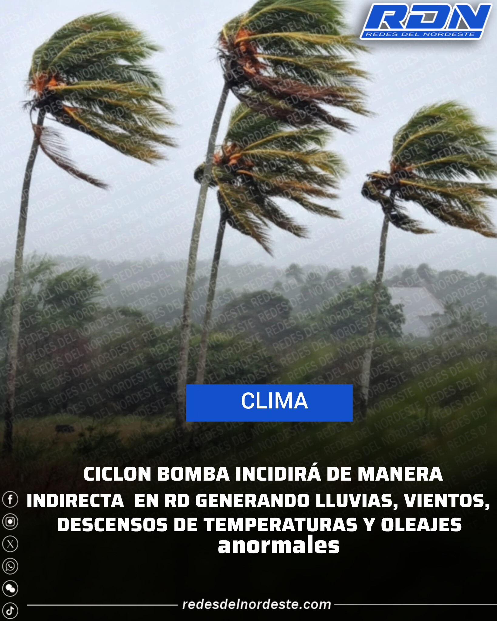 CICLON BOMBA INCIDIRÁ DE MANERA INDIRECTA EN RD GENERANDO LLUVIAS, VIENTOS, DESCENSOS DE TEMPERATURAS Y OLEAJES ANORMALES