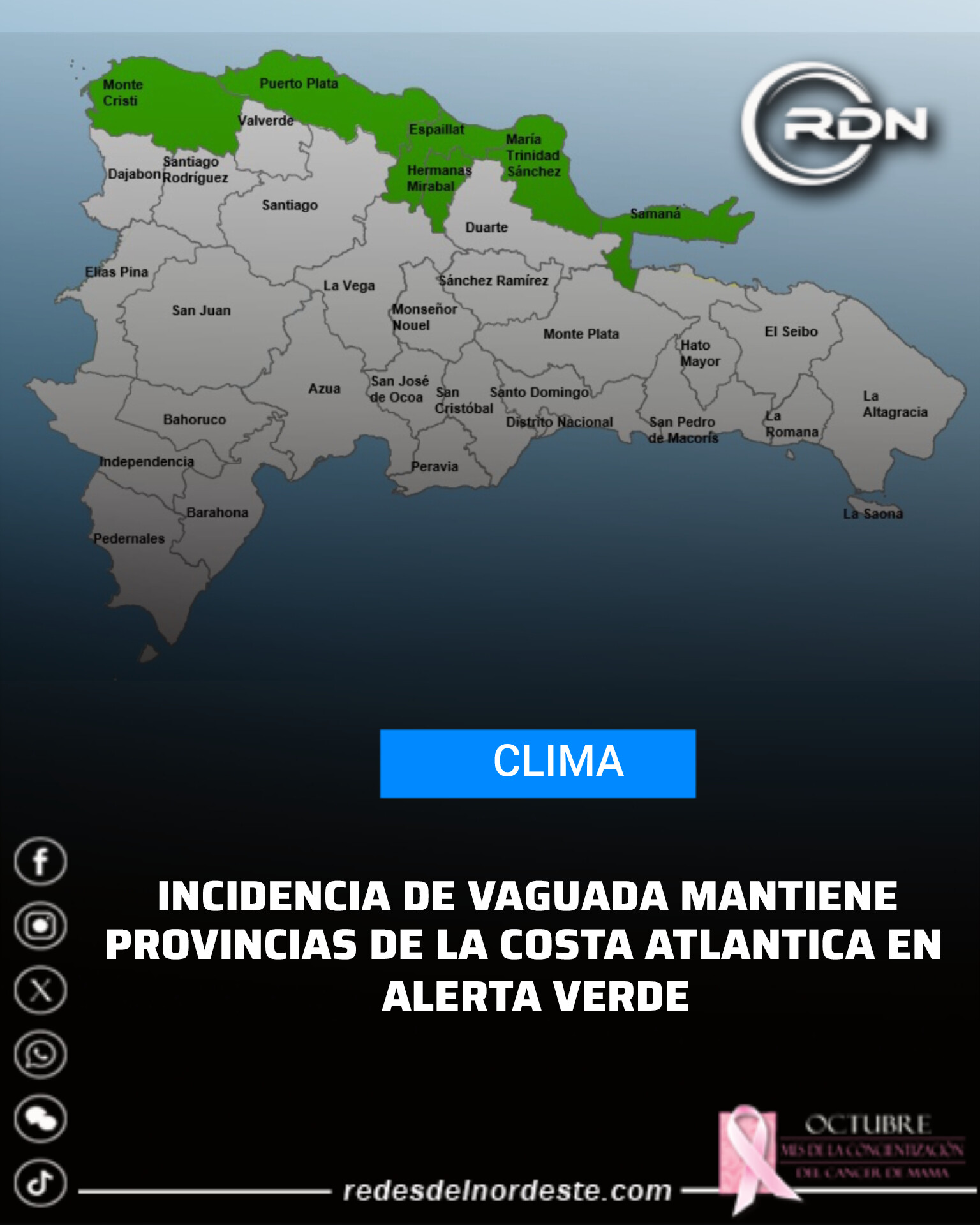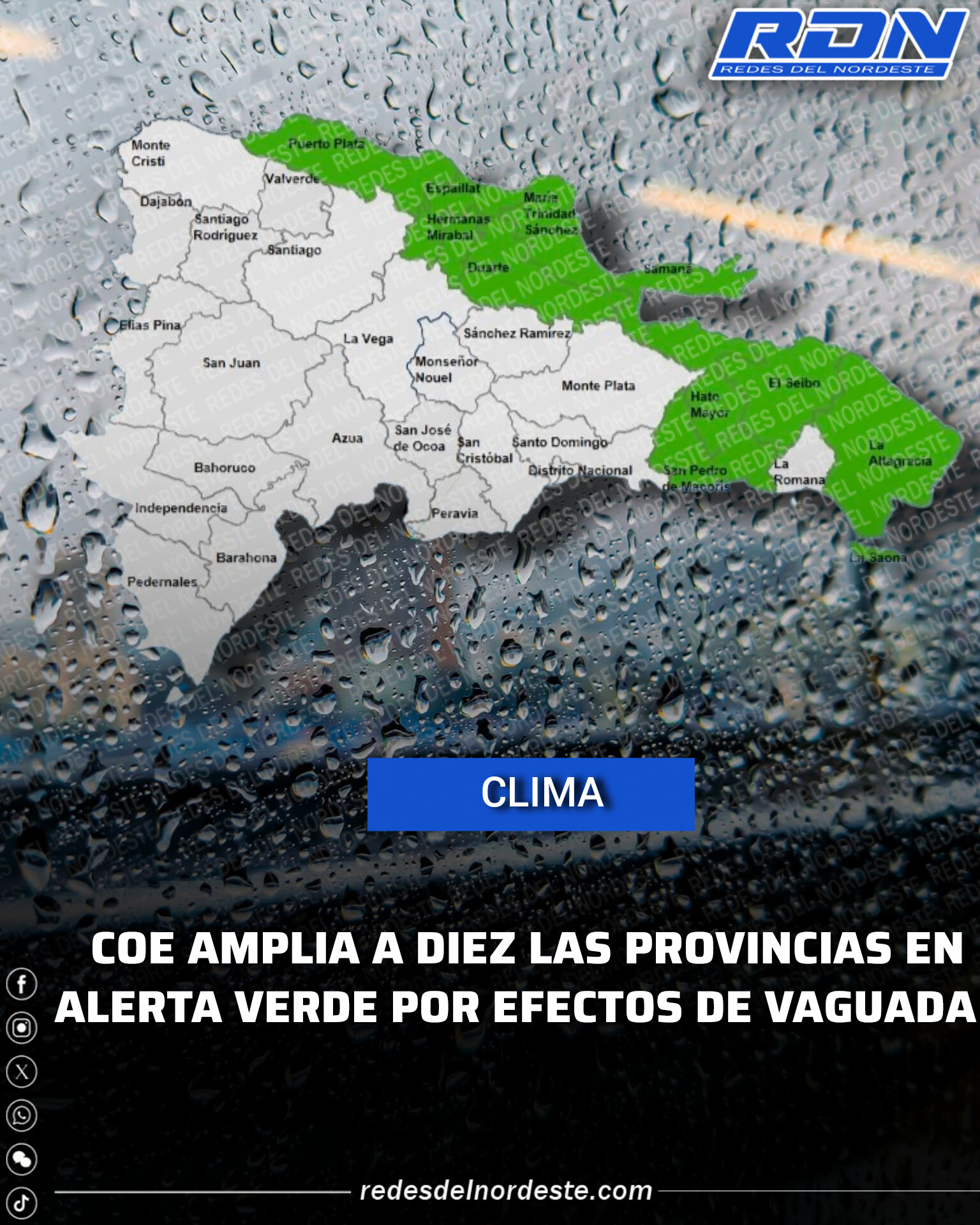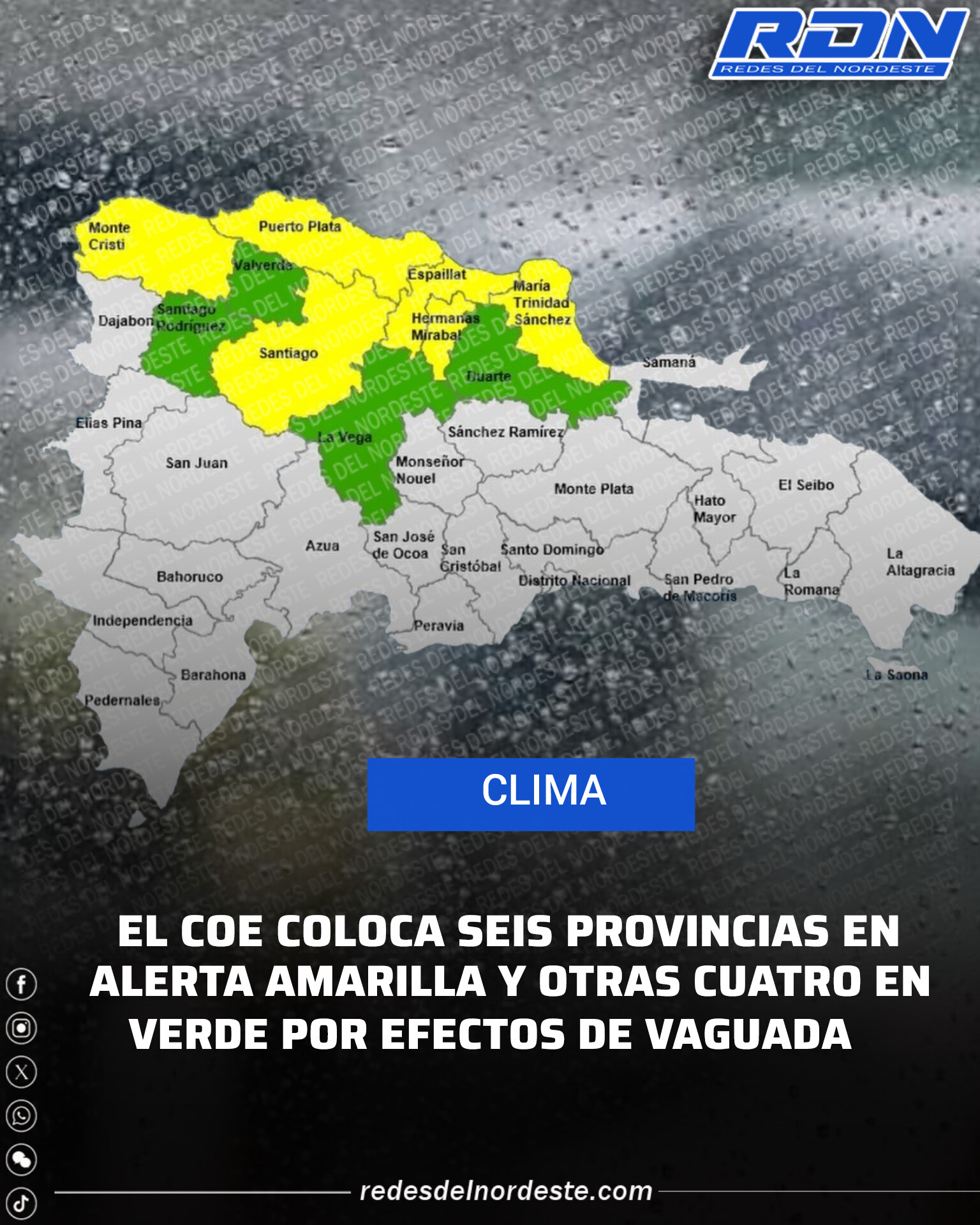 EL COE COLOCA SEIS PROVINCIAS EN ALERTA AMARILLA Y OTRAS CUATRO EN VERDE POR EFECTOS DE VAGUADA
