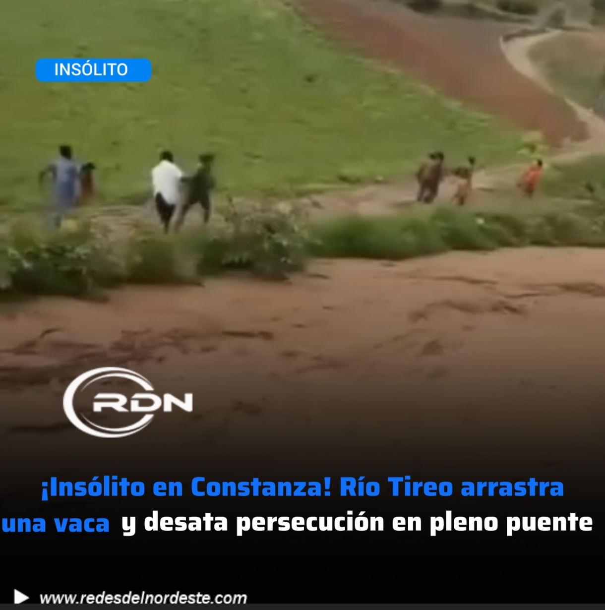 ¡Insólito en Constanza! Río Tireo arrastra una vaca y desata persecución en pleno puente