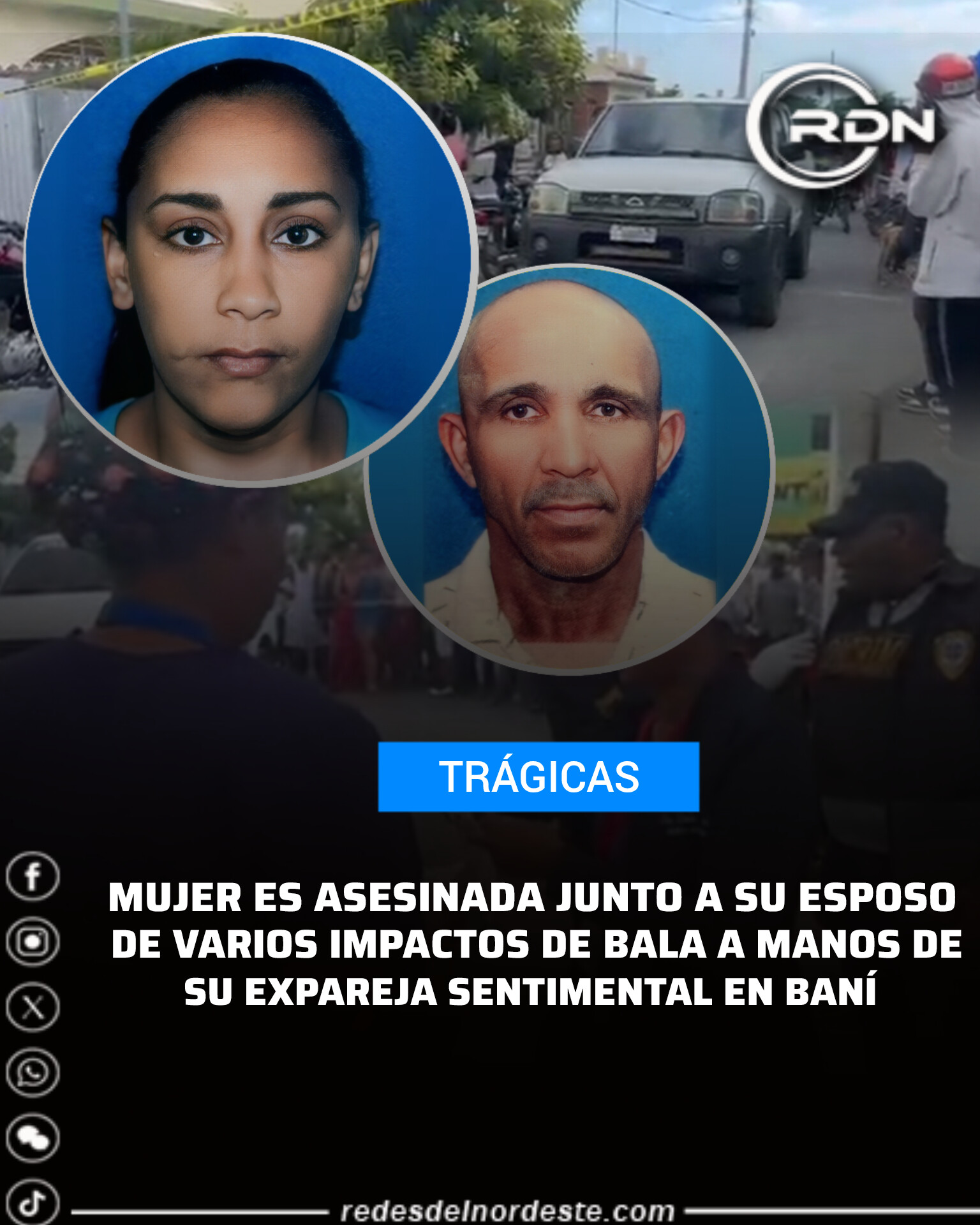 MUJER ES ASESINADA JUNTO A SU ESPOSO DE VARIOS IMPACTOS DE BALA A MANOS DE SU EXPAREJA SENTIMENTAL EN BANÍ