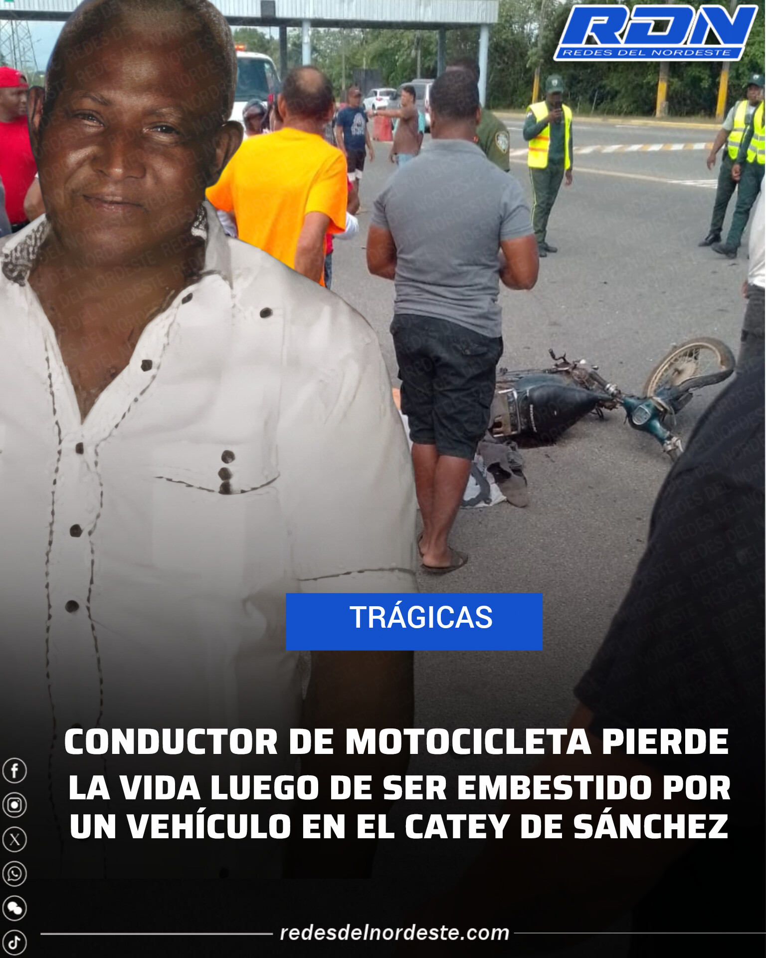 CONDUCTOR DE MOTOCICLETA PIERDE LA VIDA LUEGO DE SER EMBESTIDO POR UN VEHÍCULO EN EL CATEY DE SÁNCHEZ