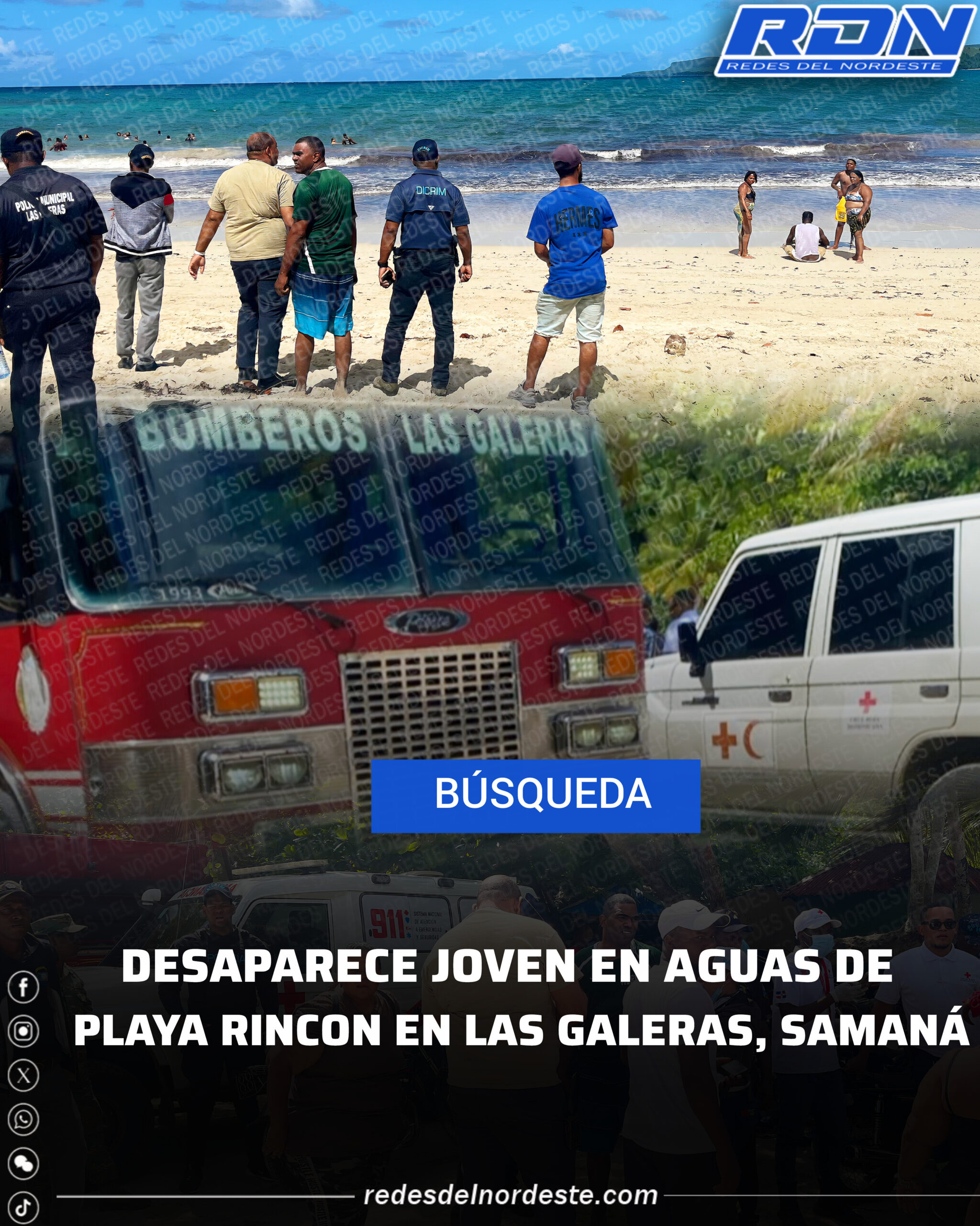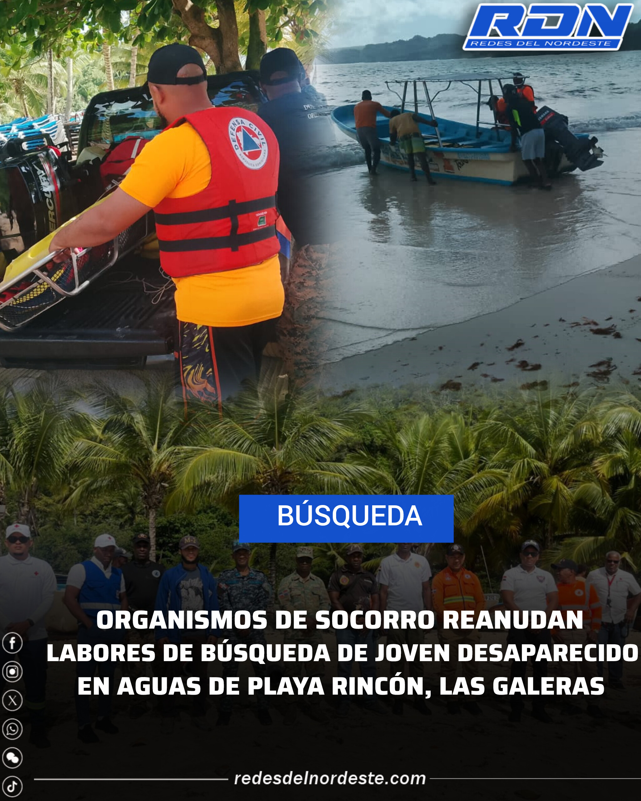 ORGANISMOS DE SOCORRO REANUDAN LABORES DE BÚSQUEDA DE JOVEN DESAPARECIDO EN AGUAS DE PLAYA RINCÓN, LAS GALERAS
